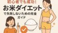 お米ダイエットは「我慢しないこと」がポイントです。1ヶ月間、無理なく続けることで、健康的にスッキリ体型を目指せます。まずは今日から、楽しみながら始めてみましょう!